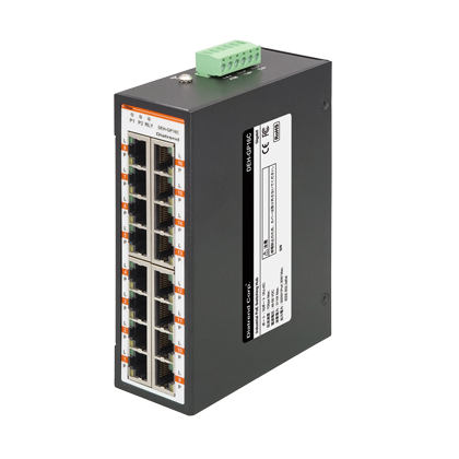 DEH-GP16Cは16ポート搭載ギガビットタイプのPoEスイッチングハブです。 全ポートがPoE (Power over Ethernet) に対応しており、LANケーブル1本でデータ通信と電力供給を可能にします。 電源工事や電源確保に難しい場所でも、無線LANアクセスポイントやネットワークカメラ等の設置が可能です。 動作温度範囲は-40〜75℃と広域であるため、過酷な産業環境でも使用できます。 EN62368-1等の安全規格を取得しています。 DINレール、壁掛け取り付けに対応できます。