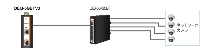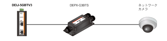 PoEエクステンダーDEPX-G3BTS、DEPX-G5BTを使用すると、データ通信と電力供給の距離延長を可能にします。