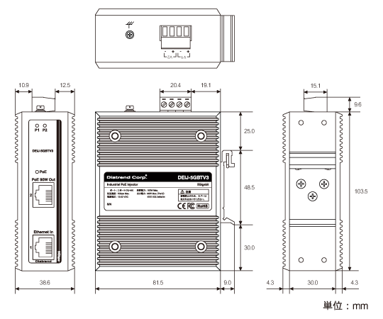 DEIJ-5GBTV3は、昇圧回路内蔵により、DC12~52Vの幅広い入力電源に対応した産業用PoEインジェクターです。